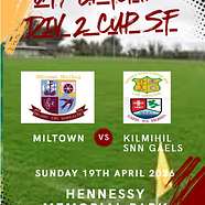 The second half started well for our junior side when a well worked team move saw Paul Keane find Ger Malone who expertly struck to the corner of the net with a deft finish off his left leg. A point from Sean Malone extended the lead before Clooney Quin reduced the deficit to two. Ger Malone extended the lead to three before a Gary Egan point increased Miltown's lead to four. Clooney Quin scored a 45 to narrow the gap to three and a strong defensive display led by Martin Rynne ensured Miltown prevailed on a scoreline of 1-7 to 0-7.